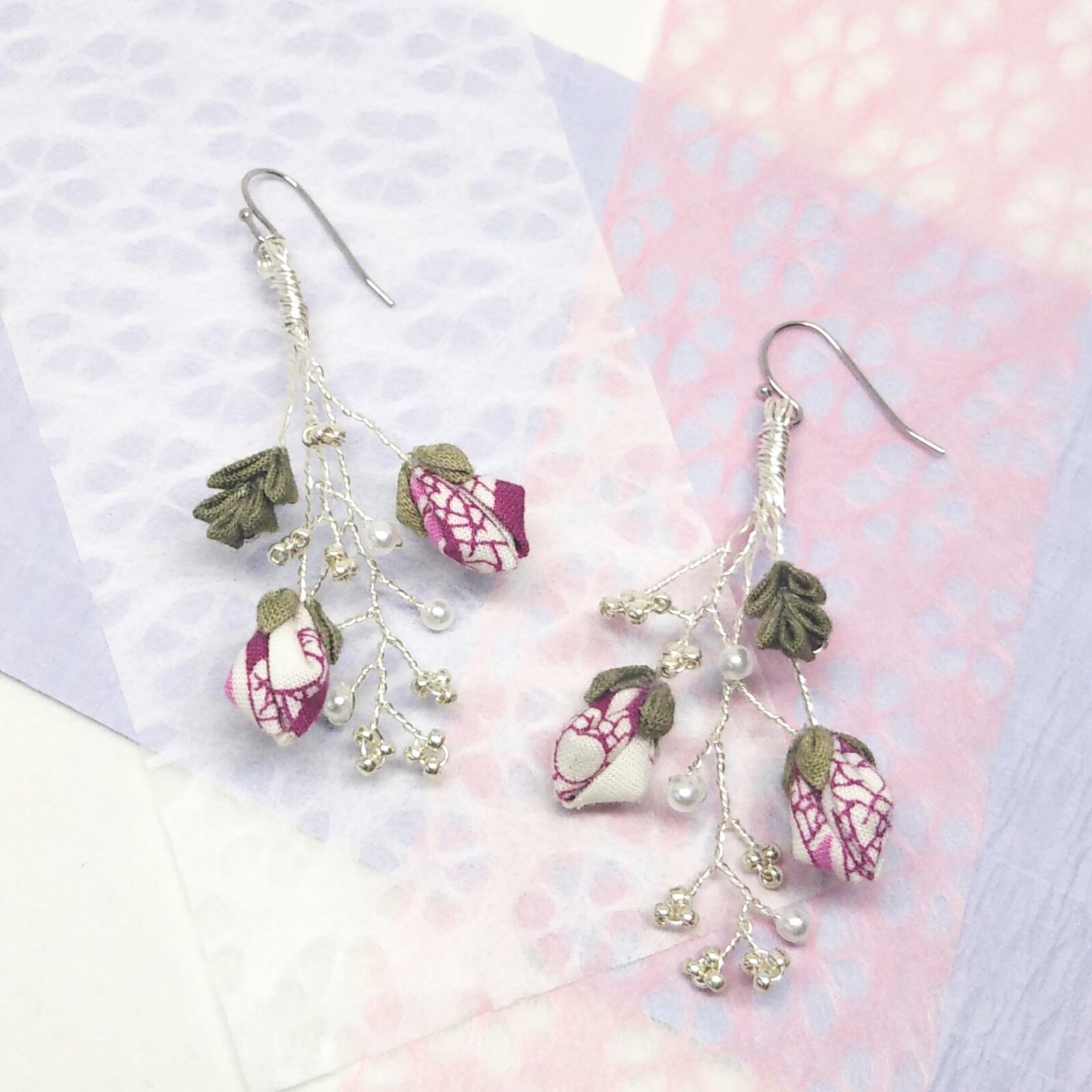 つまみ細工の素材:コットン(綿)、ビーズ、樹脂パール、銅線